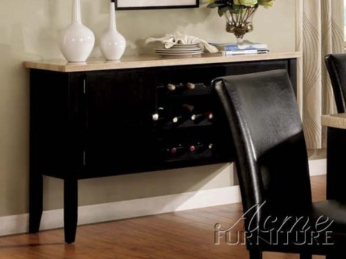 - Server Sideboard with Marble Top and Wine Rack in Black Finish