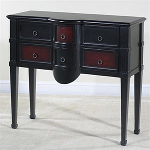 Finish:Black The Saratov sideboard is an impressive console constructed in a modern, contemporary design. Its six felt lined drawers provide ample storage for your needs. Six felt lined drawers Antique brass round pulls Elegant, simple lines Solid wood construction Early American design Top area: Length: 42' - Width: 15' Small drawers: Width: 5.5' - BackToFront: 13.5' - Height: 5.25' Large drawers: Width: 10.5' - BackToFront: 11.75' - Height: 5.25' Requires little to no assembly Read more...