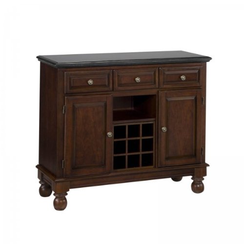 Finish:Cherry, Top Finish:Black Granite Home Styles Premium Large Buffet features a solid and engineered hardwood construction. Features: Two doors that open to a storage area with two adjustable shelves Three utility drawers for added storage Open center area that accommodates two adjustable shelves for display or removable wine cube can be used for wine storage Turned bun feet for a finished look Read more...