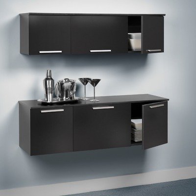 BCBW-0203-1 / BCHW-0203-1 Features: -Wall mounted hutch and buffet set. -Coal Harbor collection. -Black finish. -Stylish, practical, and affordable. -Designed for use in a wide range of applications. -Can be used individually or as an ensemble. -Doors have hidden, self-closing hinges. -Solid metal handles with a brushed nickel finish. -Hanging rail mounting system. -Simple installation. -Assembly required. -Manufacturer provides limited 5 years warranty on parts. Read more...