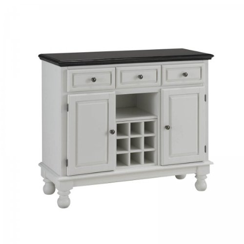 Finish:White, Top Finish:Black Granite Home Styles Premium Large Buffet features a solid and engineered hardwood construction. Features: Two doors that open to a storage area with two adjustable shelves Three utility drawers for added storage Open center area that accommodates two adjustable shelves for display or removable wine cube can be used for wine storage Turned bun feet for a finished look Read more...