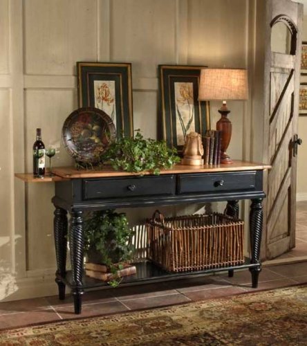 Discover the difference with the Wilshire Rubbed Black Sideboard Table by Hillsdale Furniture. The vintage appeal of this sideboard table makes it a fine choice for adding to any dining room, hallway, even living room. Featuring a pine table top that is elegantly complemented by a rubbed antique black finish base, it has one rich appearance. Ideal for displaying and storing items as well with that pine table top, drawers, and lower shelf, this is one selection that you'll cherish for years. A welcome addition. Click Today. Read more...