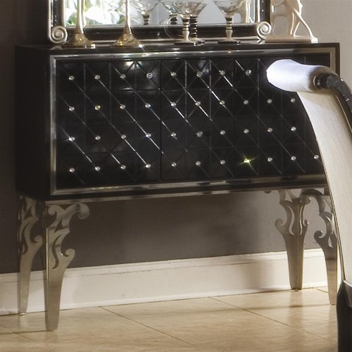 You'll be ready for most hosting situations with Aico Amini Hollywood Swank Black Sideboard in your home decor. The Aico Amini Hollywood Swank Black Sideboard consists of graphite or pearl finish with this multiple storage options. Plus, the metal legs have a decorative design that matches with the small round knobs. You're sure to make a modern and memorable statement in your home with Aico Amini Hollywood Swank Black Sideboard. Collection Description With classic glitz and endless glamor, the Hollywood Swank collection by Aico Michael Amini will bring the perfect marriage of drama and passion into your home setting. Breathing with old-Hollywood style, these office, living, dining and bedroom pieces from Michael Amini each embody a rich dialogue of supporting lines and elements as well as carry a variety of unique finishes and upholstery. In addition, elegant details such as butterfly door handles, light bulb-lined mirrors, symmetric metal trimming and cabriole legs add a level of stunning sophistication to the overall look. Liven any room in your home with dazzling designs by adding the Hollywood Swank collection by Aico Michael Armini to the decor. Read more...