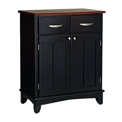 Finish:Black/Cherry Constructed of hardwood and wood products in a natural finish with a natural wood top. Features two utility drawers and two wood framed cabinet doors with an adjustable shelf for plenty of inside storage. Brushed steel hardware. Dimensions: Server size: 29.25' x 15.875' x 35.5' high. Wood top size: 29.25' x 15.875' x 0.75' high. Assembly Required. Read more...